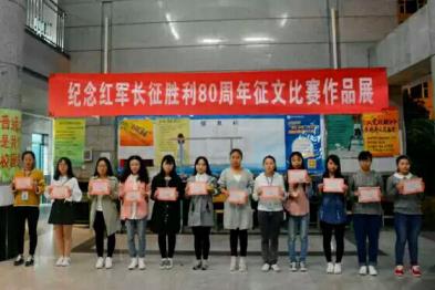 10月24日由我院团校委主办,文学社承办的纪念红军长征胜利八十周年征文活动圆满结束。川康学子踊跃投稿,几经角逐,在众多稿件中最终选出了一批优秀的作品于我院教学楼大厅进行了征文作品展。15级影像二班曾蕾、16级康复四班徐慧萍荣获一等奖;16级临床二班郭思、16级护理十班黄兴香等五名同学获得二等;16级护理九班张力宏、16级康复四班李雅雯、16级康复五班康小虎等7名同学获得三等奖。