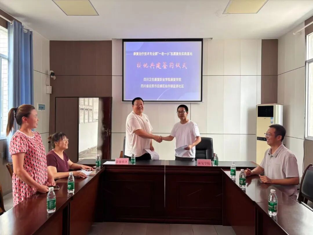 9月5日, 四川卫生康复职业学院康复学院与盐驿社区正式签署“一老一小”志愿服务协议,建立长期合作关系。协议明确将定期组织具备相应资质的学生志愿者赴社区开展健康监测与中医康复服务,建立常态化志愿服务机制。该合作既为医学生提供了持续稳定的社会实践平台,也为社区居民带来了长期可靠的健康服务保障,搭建双向受益的合作模式。