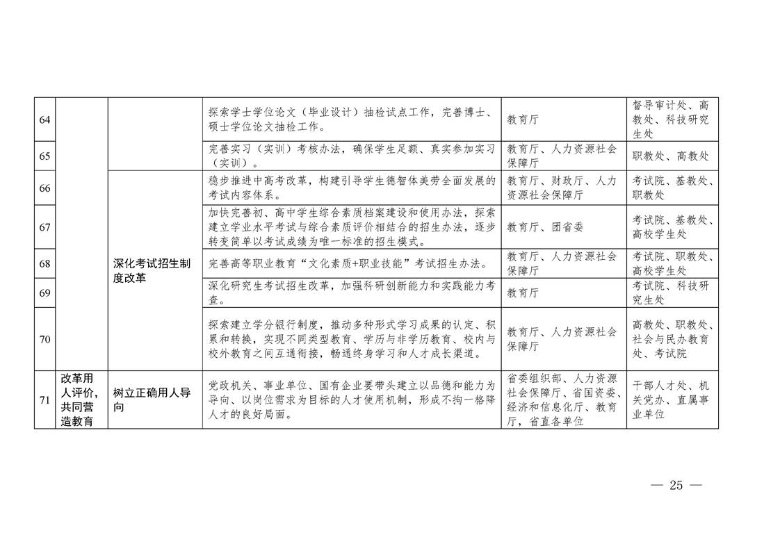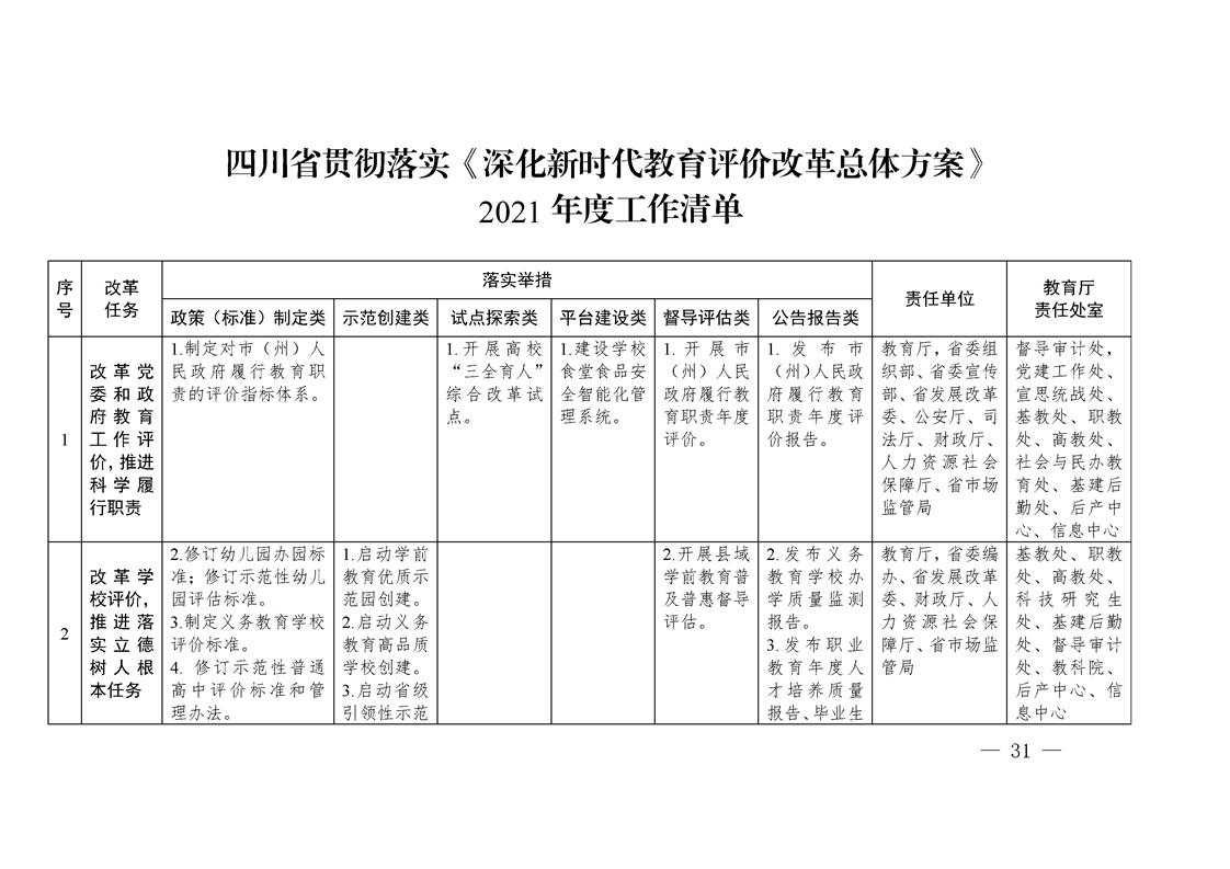 四川省贯彻落实 《深化新时代教育评价改革总体方案》 任务分工方案
