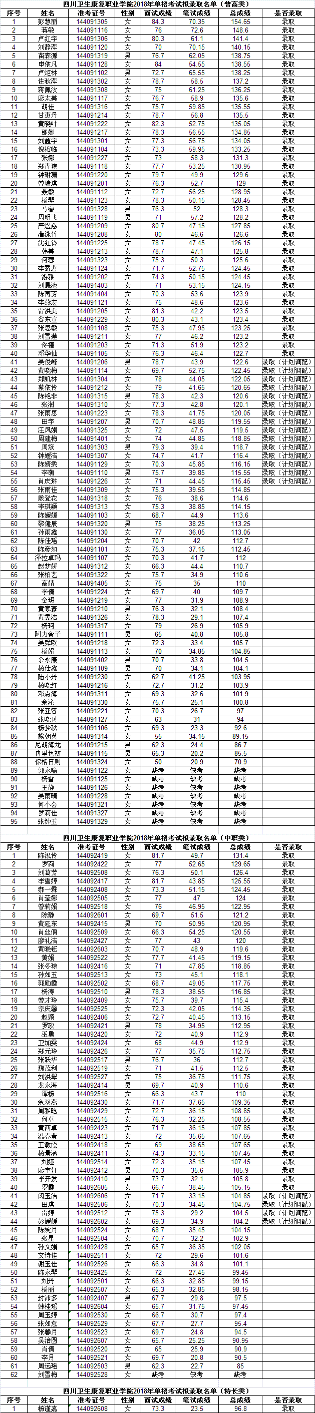 根据《四川卫生康复职业学院2018年单独招生章程》,经学院单独招生工作领导小组批准,现将我院2018年单独招生录取控制线公布如下,总分上线的考生方有资格录取。拟录取名单同时进行公示(公示期2018年4月6-12日)。