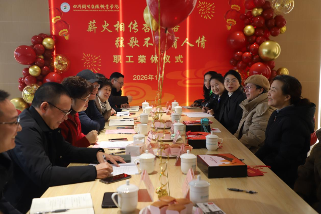 2026年1月8日上午,四川卫生康复职业学院图书馆内暖意流淌、书香萦绕。学校在此为三位躬耕教坛数十载的退休教师——罗天蔚、刘筠、丁英老师举行庄重而温馨的荣休仪式。