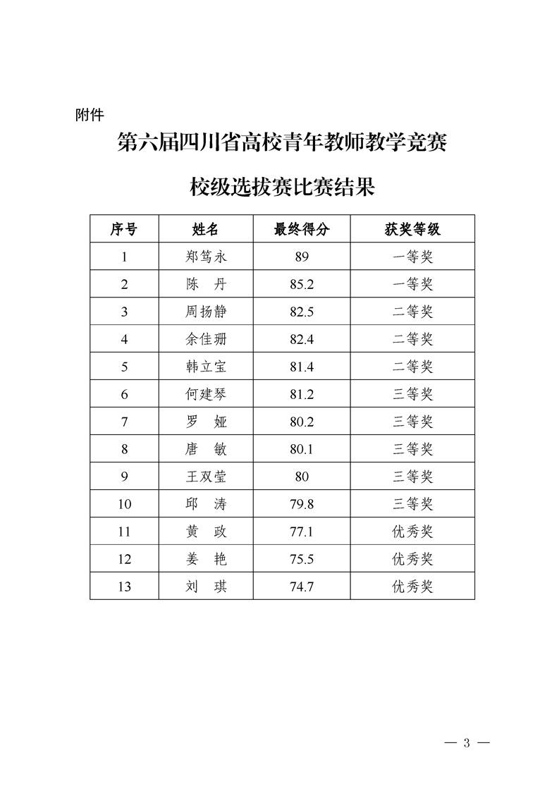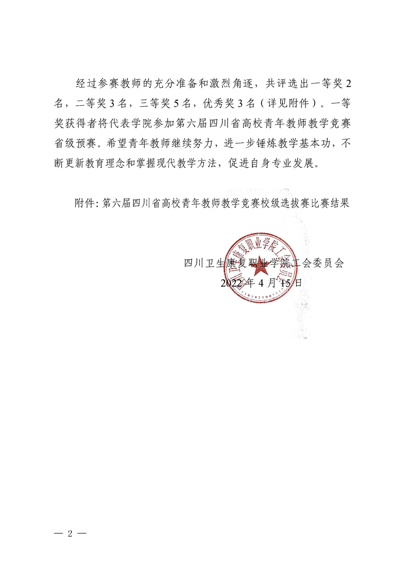 关于2022年青年教师教学竞赛校级选拔赛比赛结果的通知