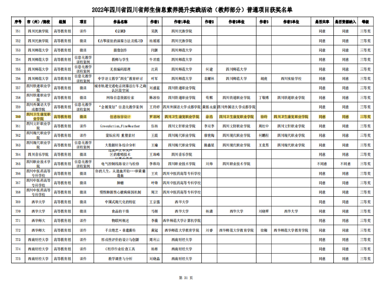 近日,四川省教育信息化与大数据中心(四川省电化教育馆)对2022年师生信息素养提升实践活动(教师部分)获奖名单进行了公示,护理学院罗羽珂教师团队的作品《创意妆容设计》荣获四川省师生信息素养提升实践活动三等奖。学院将进一步加强教师信息素养培养,深化课程改革,坚持以赛促教,以赛促改。