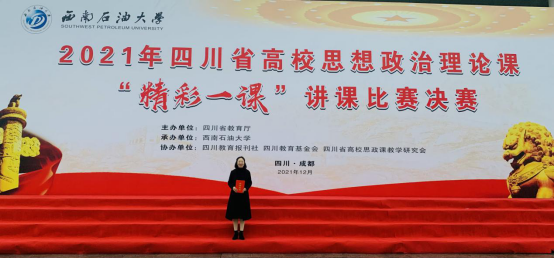 12月10日,由四川省教育厅主办的四川省高校思想政治理论课“精彩一课”讲课比赛决赛在西南石油大学圆满落幕,我校马克思主义学院教师张莉荣获二等奖。