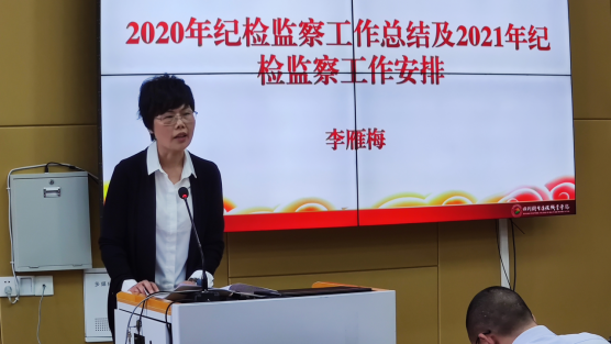 学院纪委书记李雁梅总结了2020年纪检监察工作开展情况,并从强化政治保障、强化上层决策部署落实监督、强化学院政治生态建设、在纠“四风”“树新风”上抓力、在自身建设上抓力五个方面安排部署了2021年纪检监察工作。随后,李雁梅通报了近期违纪违法典型案例,强调要把责任扛在肩上,以案为鉴,以案促改,加强廉洁教育,切实扛起党风廉政建设政治责任。