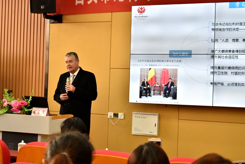为全面掌握学院承办的比中友好合作——UCB癫痫病援助项目开展情况,1月16日,比利时驻华大使HE Marc Vinck、比利时驻华大使经济顾问David Jordens一行亲临我院调研。