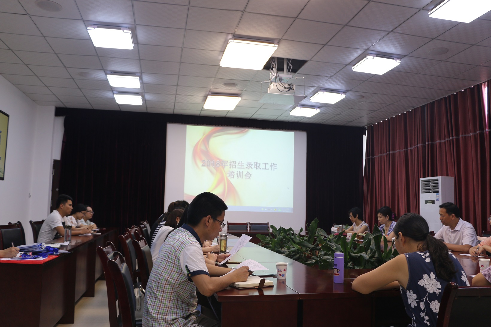 8月12日晚,学院图书馆十分热闹,院领导、相关职能处室负责人、各系部主任、部分教研室主任齐聚一堂,只为一件大事——2018级新生录取工作。