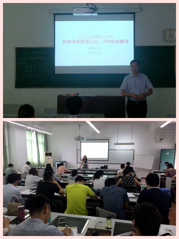 为使广大教职工切实了解职称评审政策的变化和学院职称评审工作的开展情况、管理办法和标准,更好地发挥职称评审的激励和杠杆作用,自5月3日开始,人事外事处共组织了5场宣讲会,从职能处室到系部,覆盖了全体教职工。宣讲内容包括有关事业单位岗位管理的基本知识、2017年四川省高校职称评审政策变化、学院2017年职称评审工作开展情况等,重点对学院职称评审管理办法和职称评审标准进行了细致的解读。宣讲会后,人事外事处相关人员还对老师们的疑问进行了细心解答和耐心指导。