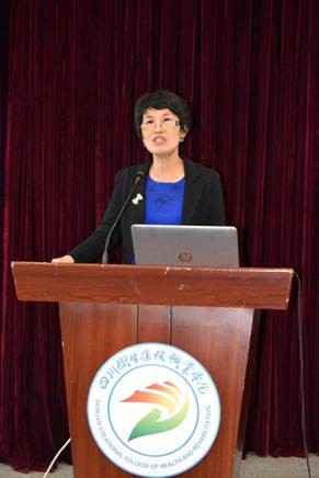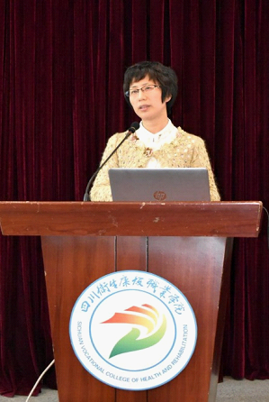 自贡市护理学会会长廖学勤为此次说课比赛致辞。她首先感谢各参赛单位的积极组织和参与,感谢四川卫生康复职业学院这些年来对自贡市各级医疗单位的积极指导,在行业中发挥的重要作用。