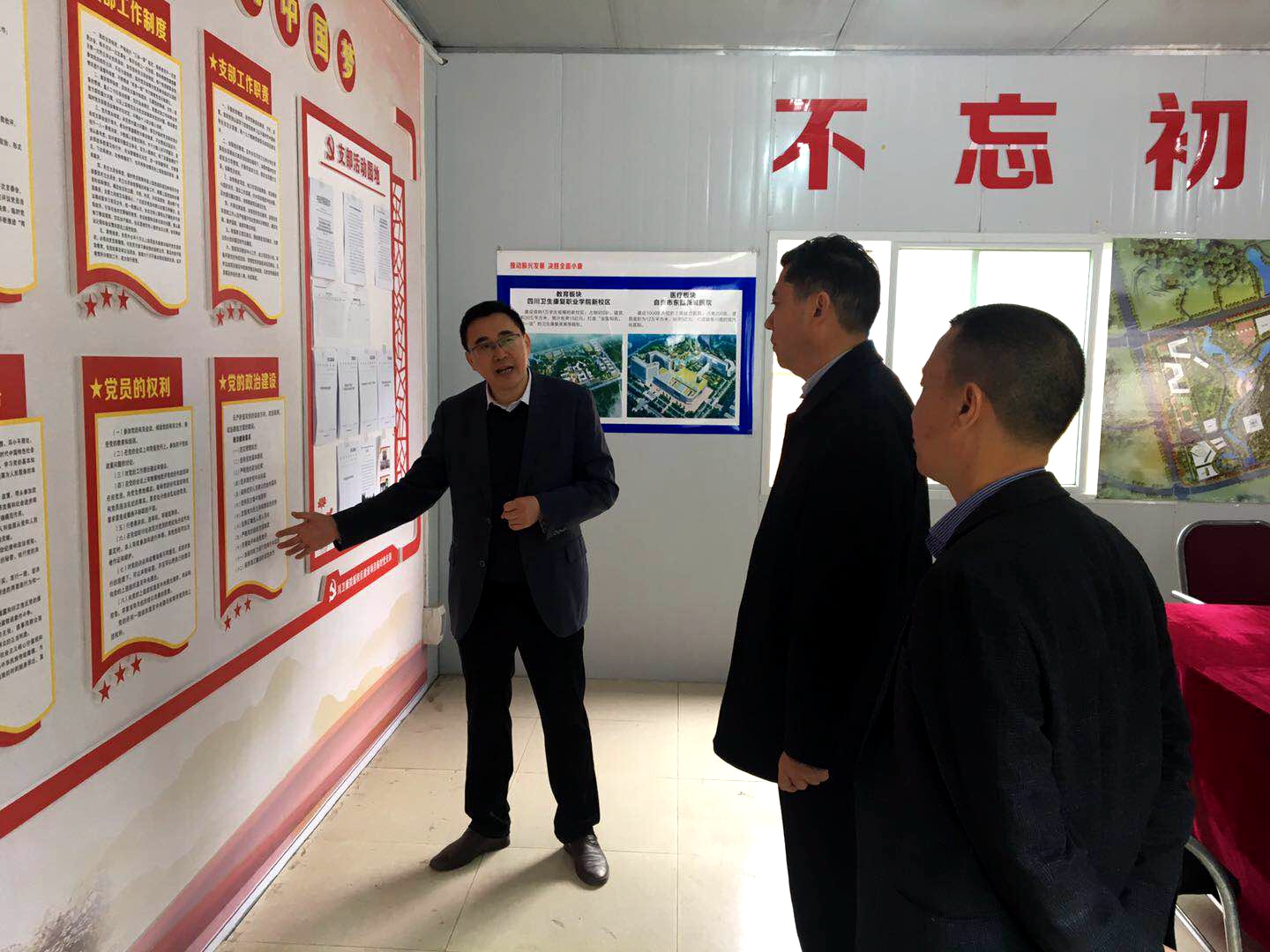 3月28日上午,省卫生计生委党组成员、副主任宋世贵在市卫计委主任黄麟陪同下率体改处、规财处、医政处相关负责同志到我院新校区现场督导项目建设工作。学院党委书记刘建辉作项目建设专题汇报。