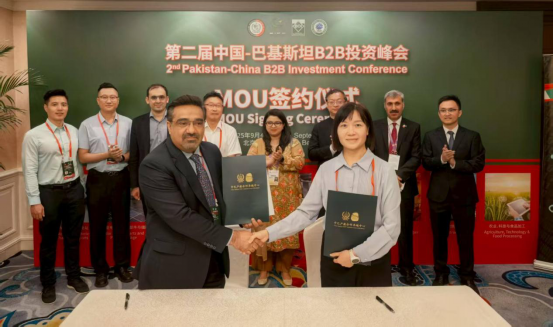 9月4日,由巴基斯坦驻华大使馆主办、巴基斯坦总理参与推动的第二届中国-巴基斯坦B2B投资峰会,在北京中国大饭店隆重召开。我校党委委员、副校长李琴,对外合作与产教融合处处长唐胜云作为受邀学校代表参加。我校以共建“中文+职业技能”培训基地为核心申报的中巴产教合作卓越中心(CPTICE)教育合作项目历经巴基斯坦国家职业技术教育委员会(NAVTTC)、部长委员会及巴基斯坦法务部至总理内阁办公室获得特批后,在省教育厅的支持下,成功入选峰会签约议程。李琴代表学校与巴基斯坦国家职业技术教育委员会总干事穆罕默德・阿米尔・简共同签署合作备忘录(MOU),巴基斯坦信息技术部部长莎萨・法蒂玛・赫瓦贾现场见证。签约标志着我校在国际化产教融合方面取得重大突破,成为服务“中巴经济走廊2.0升级版”建设的重要参与单位。