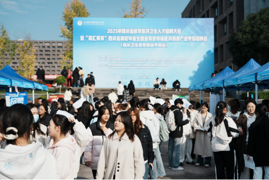 11月20日,2025年四川省秋季医药卫生人才招聘大会暨“蜀汇菁英”四川省高校毕业生就业常设市场医药健康产业专场招聘会(四川卫生康复职业学院站)在我校举行。本次供需对接活动汇集四川、重庆、北京、广东、江苏、浙江、陕西等省(市)的近300家医疗机构及卫生健康类企业,涵盖消费型医疗、基层医疗、卫生健康服务等多个领域,提供就业岗位6800余个,岗位类型丰富、覆盖面广,充分满足了不同专业毕业生的就业需求,吸引了我校及兄弟院校的3000余名应往届毕业生参加,现场达成意向1000余人次。