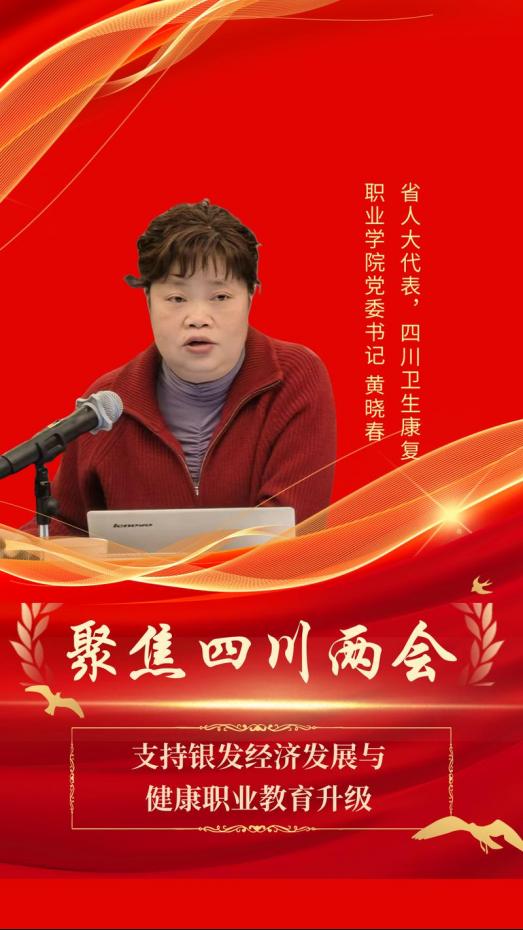 在四川省“两会”隆重召开、共绘发展蓝图之际,我校服务地方发展的行动与思考再次进入省级议事殿堂,发出积极的“川康声音”。2月4日,在四川省第十四届人民代表大会第五次会议自贡市代表团分组审议现场,省人大代表、四川卫生康复职业学院党委书记黄晓春结合教育工作实践,聚焦省政府工作报告中“拓展新型消费,发展‘银发经济’”等重要部署,提出了富有前瞻性和建设性的意见建议。