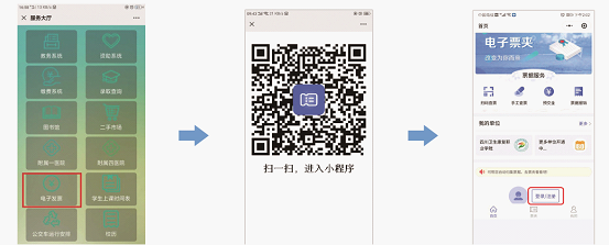 Step1.微信搜索四川卫生康复职业学院公众号--服务大厅--电子发票--长按扫描二维码--登录。