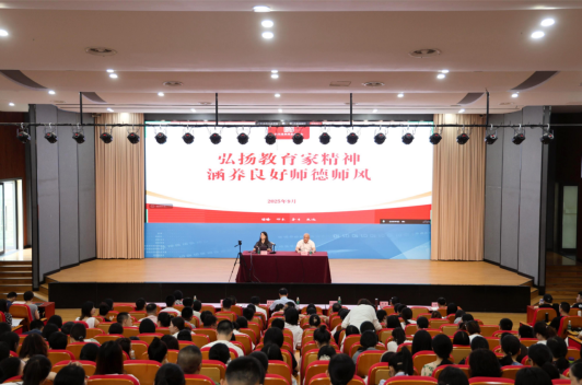 为进一步弘扬教育家精神,加强师德师风建设,营造尊师重教的良好氛围,根据学校《庆祝第41个教师节系列活动工作方案》安排,将9月定为师德师风宣传月。9月3日,学校以集中学习启动宣传月系列活动。本次集中学习特邀四川省教师发展中心培训研究所副所长胡进雨作题为“弘扬教育家精神,涵养良好师德师风”的专题讲座。讲座由学校党委副书记文铭生主持,全体在校校领导与教职工共同参加学习。