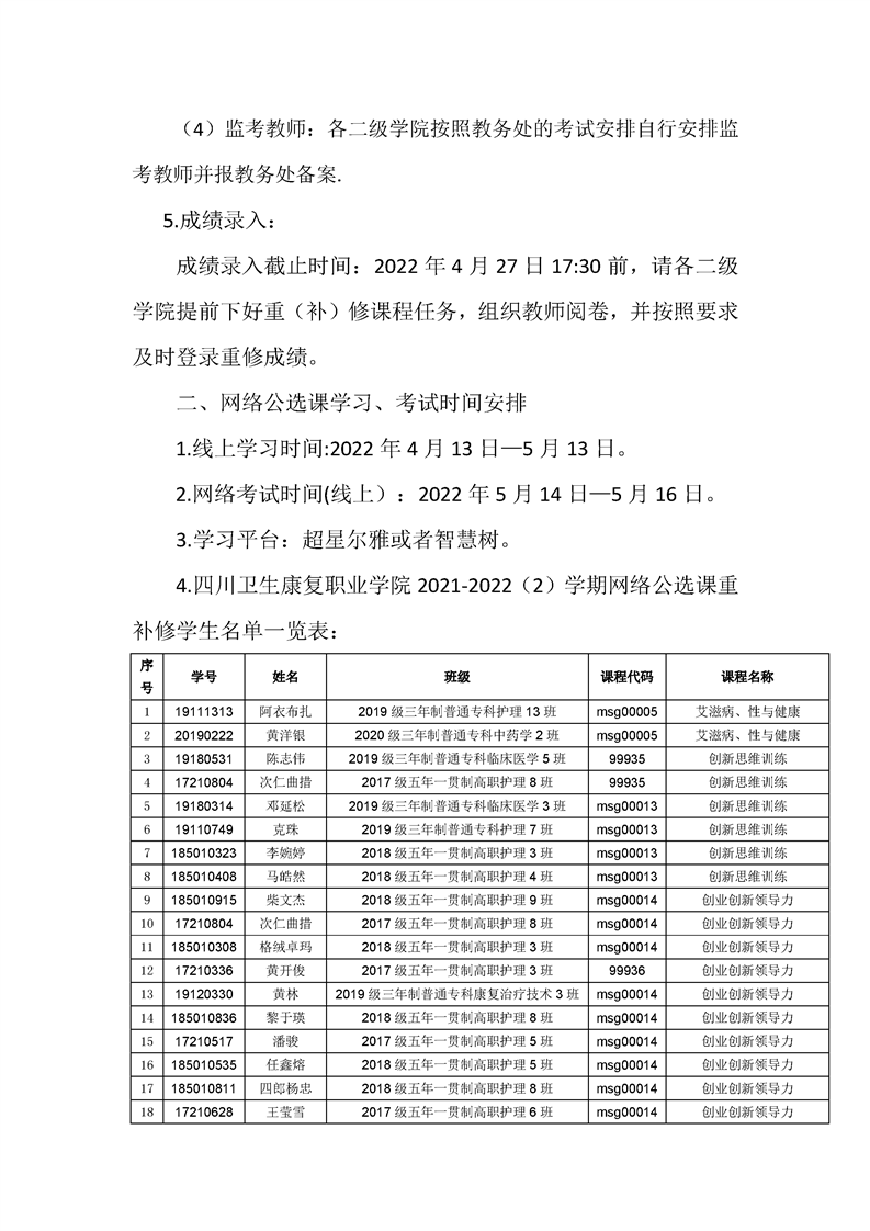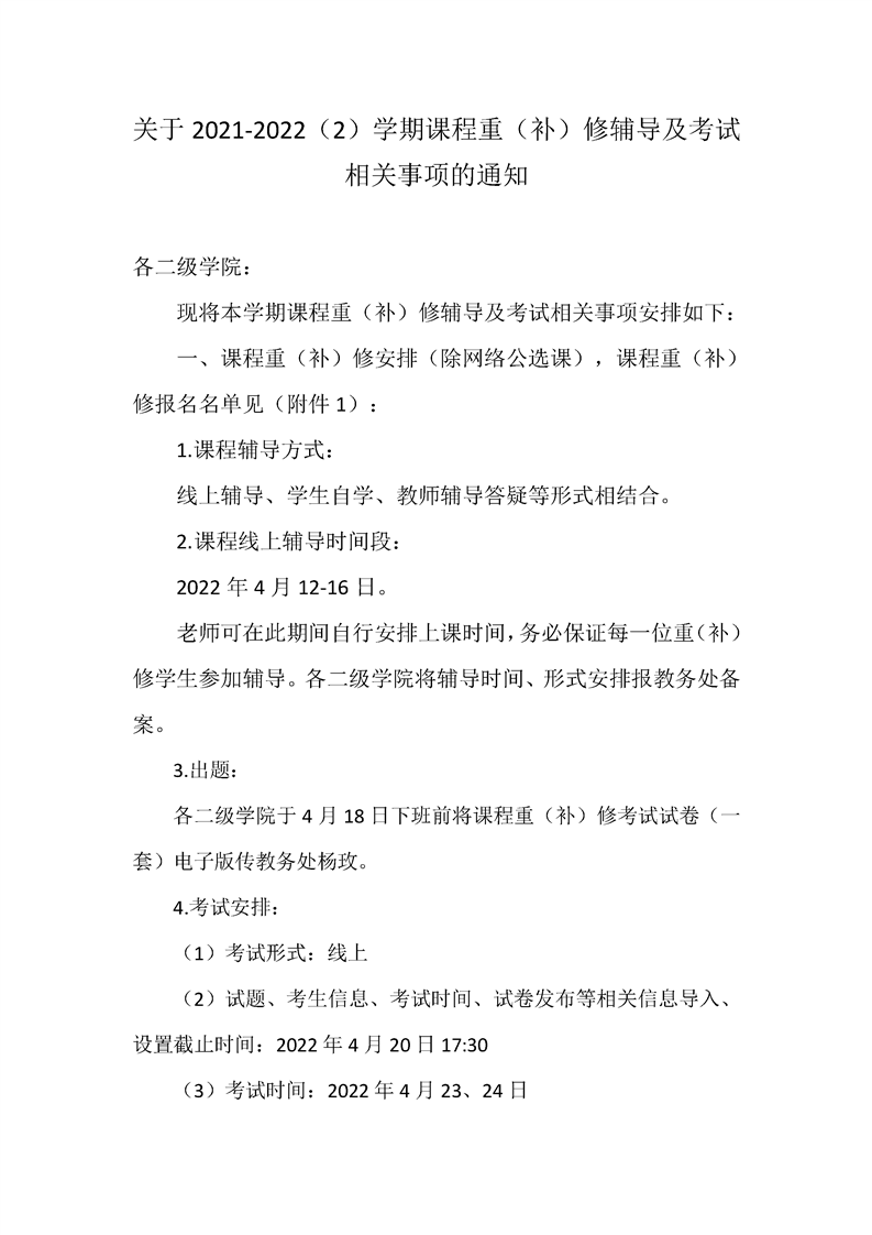 关于2021-2022(2)学期课程重(补)修辅导及考试相关事项的通知