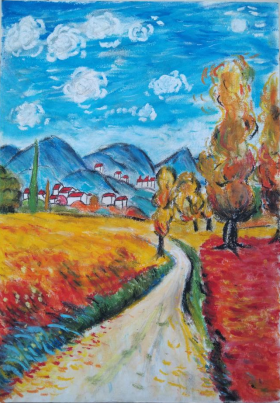 作品简介:秋意漫过山坡时,云在天畔闲游,小径循着风的轨迹,往那红顶村落而去。树把春夏的葱茏酿成金黄与橙红,。有炊烟或许正从村落里袅袅升起,而路过的风,正把这片乡野的秋,写成一封写给岁月的长信。
