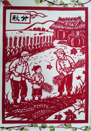 作品简介:“春种一粒粟,秋收万颗子”。秋分时节,稻穗金黄、瓜果饱满,田间劳作的农人与孩童笑语相融。将秋日丰收的喜悦与田园生活的温情,凝于刀剪的灵动间,绘就这一幅满溢烟火气的秋日图景。