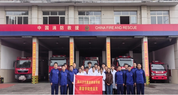 2025年10月25日上午,康复学院教师党支部“强国行”行动团队的党员教师与学生党员代表,赴自贡市消防救援支队营区,联合开展“党建引领聚合力,校队共建促发展”主题党日活动,以技能互学、资源共享推动党建与业务深度融合。