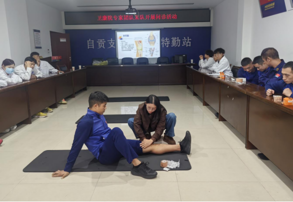 针对消防指战员训练强度大、出警频繁、膝关节易受损的职业特点,康复学院党员教师李静结合真实救援与训练案例,从膝关节生理结构、常见损伤类型、预防措施及日常养护方法等方面开展专题科普,系统讲解科学防护知识。科普结束后,李静现场演示膝关节损伤肌内效贴胶布粘贴技巧,学生党员在理疗室、宿舍为消防指战员提供专业推拿服务,有效缓解肌肉疲劳、改善身体不适,以专业技能践行“健康守护者”使命。