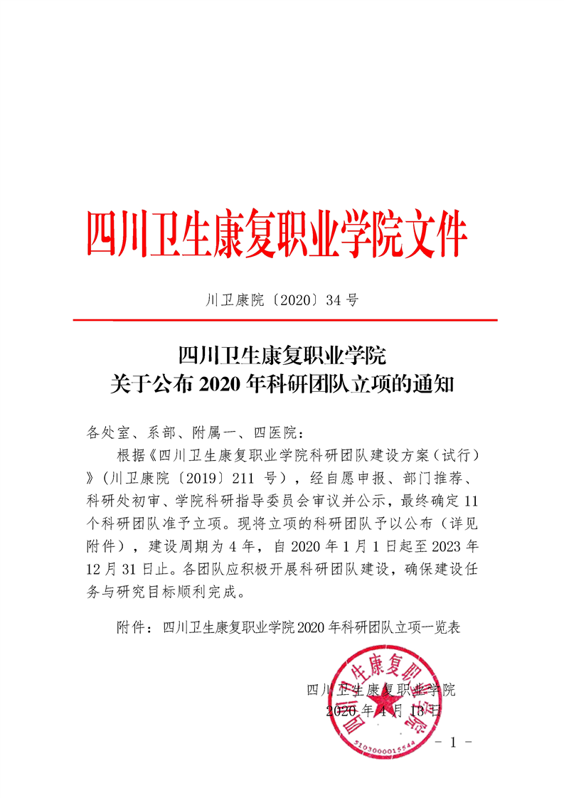 关于发布学院2020年科研团队立项的通知