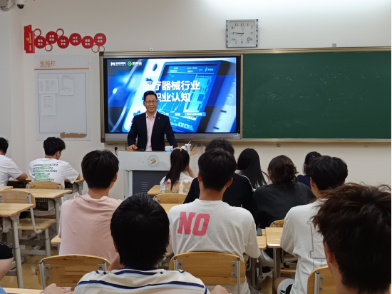 2025年6月11日,校企友好合作单位上海名迈教育科技有限公司总经理杨磊莅临我校,为临床医技学院智能医疗装备技术专业的学生举办了一场关于医疗器械行业的职业认知讲座。