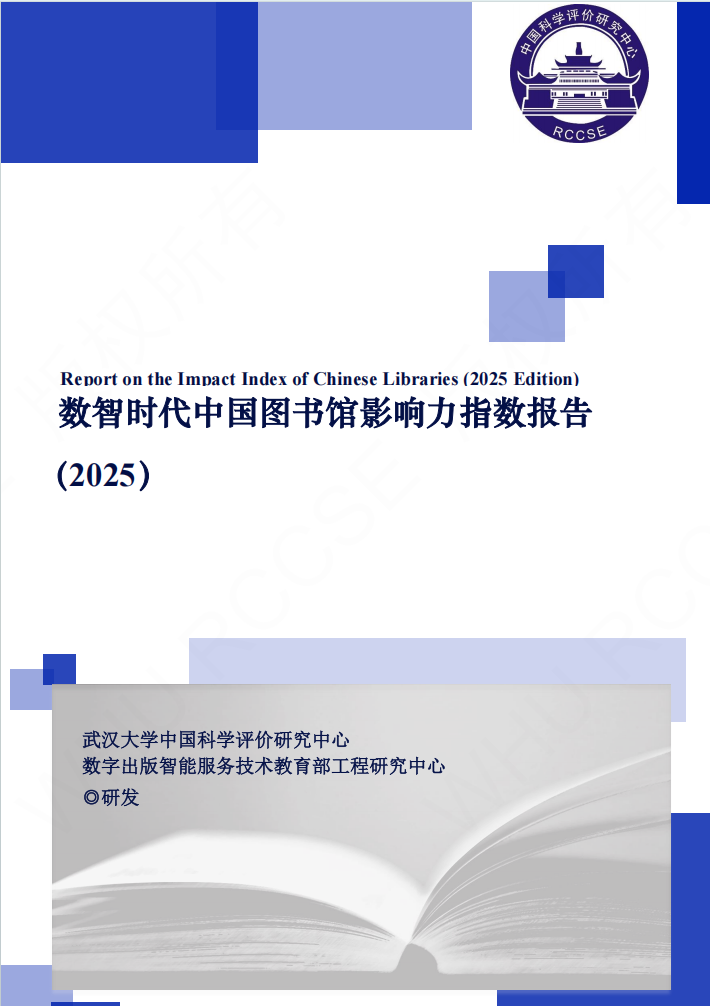 《数智时代中国图书馆影响力指数报告(2025版)》是承接《中国图书馆网络影响力评价报告(2023-2024)》和《数智时代中国图书馆影响力评价报告(2024)》开展的第三次全国图书馆影响力研究,秉承“分类评价、同类比较”原则,根据数智时代图书馆影响力的构成,基于“基础实力、网站影响力、新媒体影响力、社会影响力、学术影响力”五维一体的评估模型,通过多源数据采集、多轮人工校验与交叉检验,对全国2919所高校图书馆(其中高职高专院校图书馆1554所)、1980所公共图书馆及390所专业图书馆进行了系统评估。报告在数据获取、指标构建与结果分析中,坚持公开、透明、稳健的方法,具有较高的科学性、可比性、权威性与参考价值。