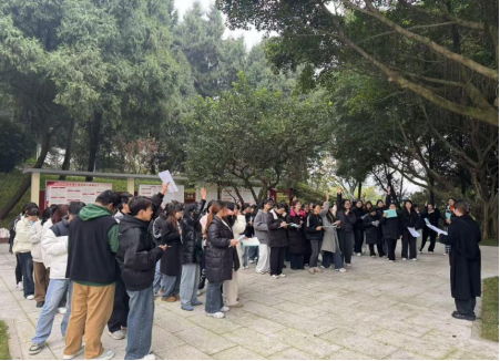 在第十二个国家宪法日之际,马克思主义学院第二党支部党员教师组织100余名青年学子前往自贡市革命烈士陵园,开展了以“缅怀英烈,法治同行”的主题宣传活动,为青年大学生打造了一堂沉浸式、互动性的“法治思政实践课”。